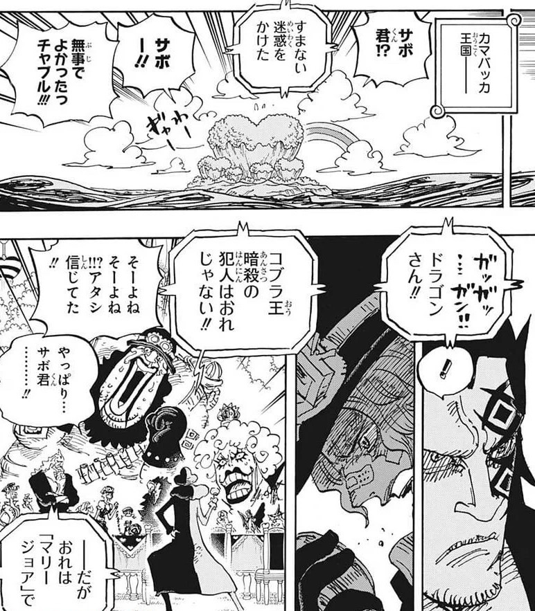事件の真相が気になるところ。行方不明のサボから革命軍が本拠地を移したカマバッカ王国へ通信