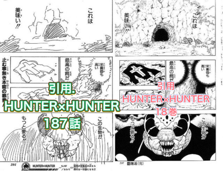 ちなみにお馴染みのHUNTER×HUNTERはこんな感じです。個人的にはやはりキメラアントの印象が強いです。コミックスでは修正されていたものもありましたが崩壊仕掛けていたことも。