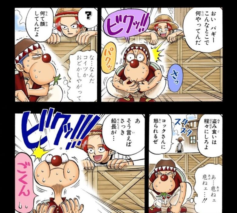 逆恨みにも程があるが当人のバギーとしてはシャンクスに当たり散らしたいであろう。シャンクスが全く悪びれていないのも気にかかる。