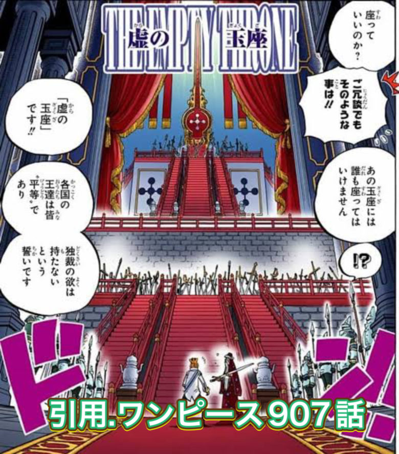過去にはそれに奮起したタイガーがマリージョアで奴隷解放を行なったり、しらほし姫の母であるオトヒメ王妃がリュウグウ王国の地上への移住について天竜人に直談判しに行ったりと物語の中でも印象的でした。